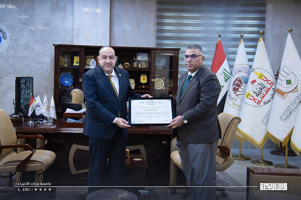 استقبل رئيس جامعة وارث الأنبياء (عليه السلام) الأستاذ الدكتور إبراهيم سعيد الحياوي وفداً من قسم التوجيه والإرشاد الأسري التابع للعتبة الحسينية المقدسة، لبحث آفاق التعاون في مجالات التعليم والبحث والتدريب.