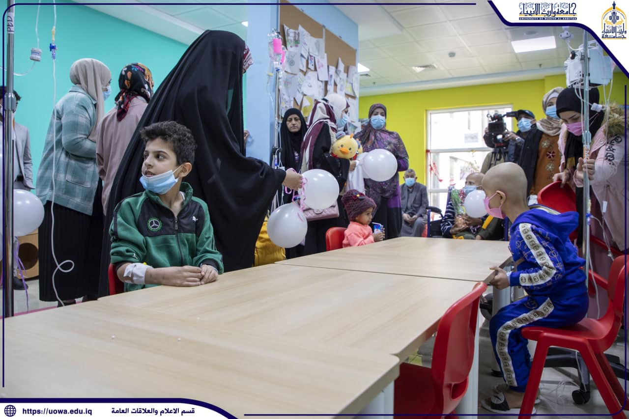 ضمن المشاريع الخيرية المستمرة التي يعمل بها الفريق وبدعم ورعاية رئاسة الجامعة زار فريق عطاء طلبة جامعة وارث الأنبياء (عليه السلام ) مؤسسة وارث للأمراض السرطانية التابعة للأمانة العامة للعتبة الحسينية المقدسة ومركز الأورام السرطانية في مدينة الامام الحسين ( عليه السلام ) الطبية في كربلاء المقدسة لتقديم الدعم المعنوي للأطفال المرضى من هدايا والعاب ومستلزمات.