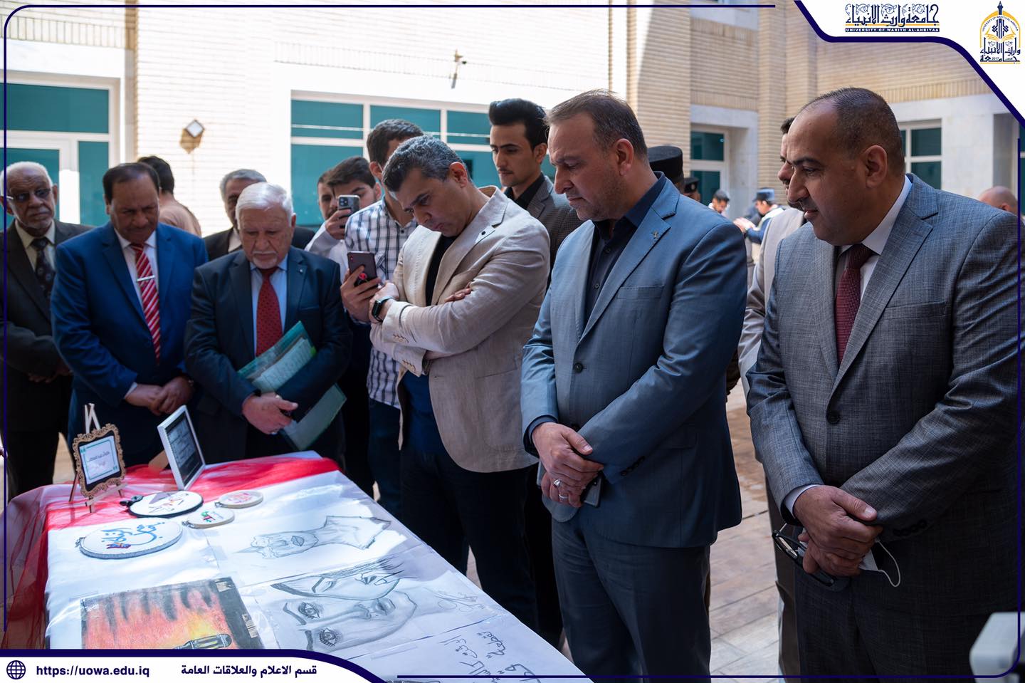 على هامش ورشة العمل التي أقامتها كلية العلوم الاسلامية للتوعية من خطر المخدرات، اطلع السيد رئيس هيئة التعليم الجامعي الاستاذ الدكتور حيدر التميمي والسيد رئيس الجامعة الاستاذ الدكتور ابراهيم الحياوي، واللواء سعد معن على المعرض الفني لطلبة الجامعة الذي ضم مواهب الطلبة ونتاجاتهم الفنية وأعمالهم اليدوية.