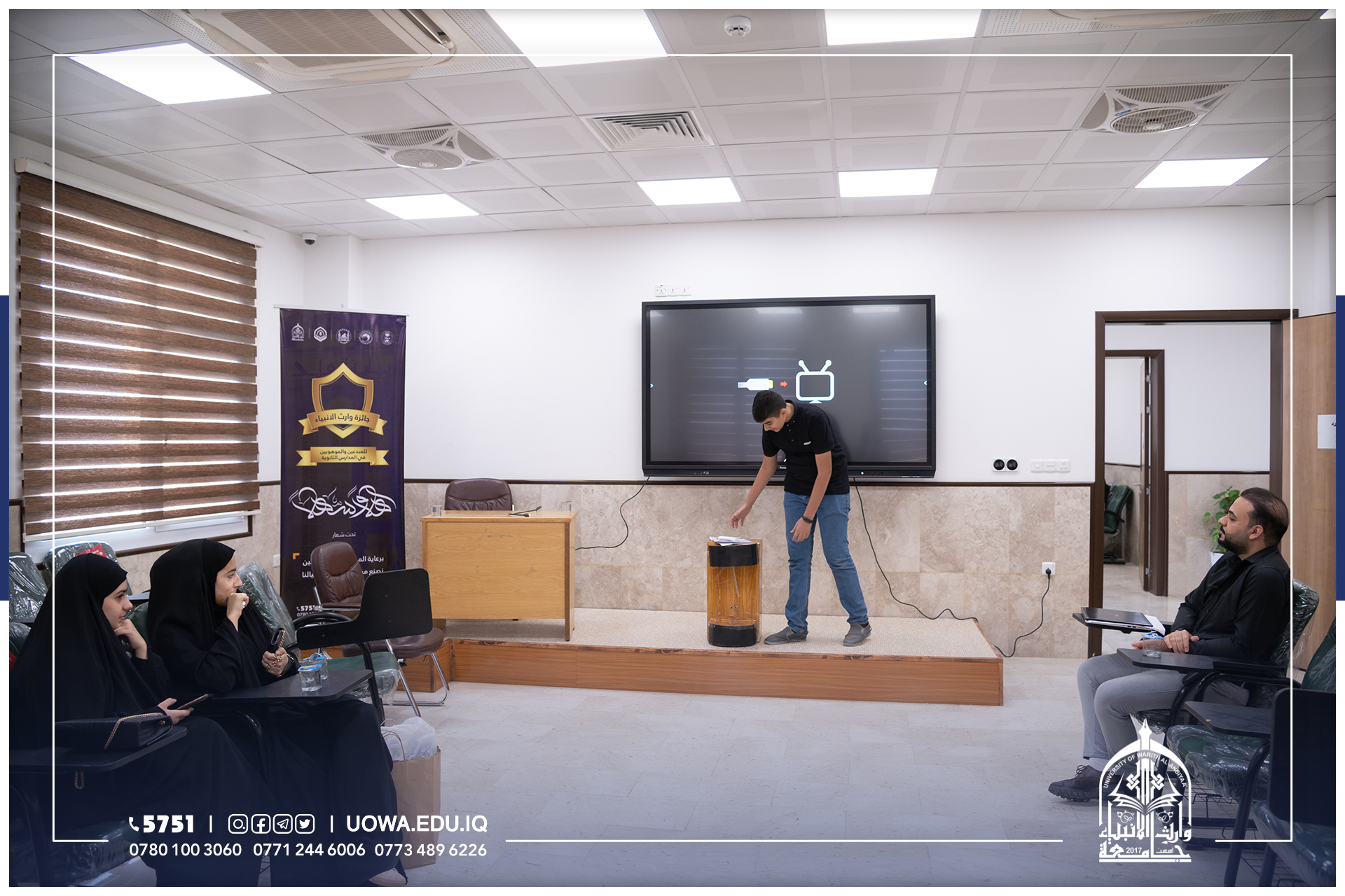 ايماناً منها بأهمية دعم المبدعين والموهوبين من طلبة الدراسة الثانوية، وبحضور السيد رئيس الجامعة الاستاذ الدكتور ابراهيم الحياوي، باشرت اللجنتان العلمية والتحضيرية التصفيات الاولى للطلبة المشتركين في مسابقة وارث الأنبياء للموهوبين والمبدعين في المدارس الثانوية.