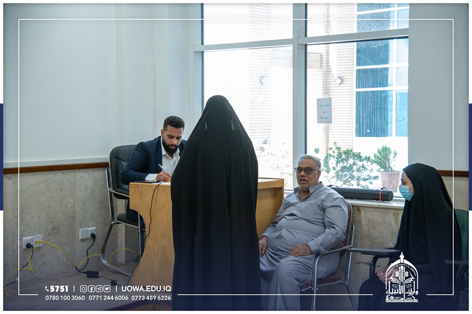 جانب من استقبال فريق التسجيل في جامعة وارث الانبياء(عليه السلام) للطلبة الاعزاء واولياء امورهم الكرام للاجابة عن استفساراتهم ومساعدتهم في انجاز اولى خطوات التقديم، وهي انشاء حساب الطالب وملء البيانات وتفعيل القنوات الخاصة.