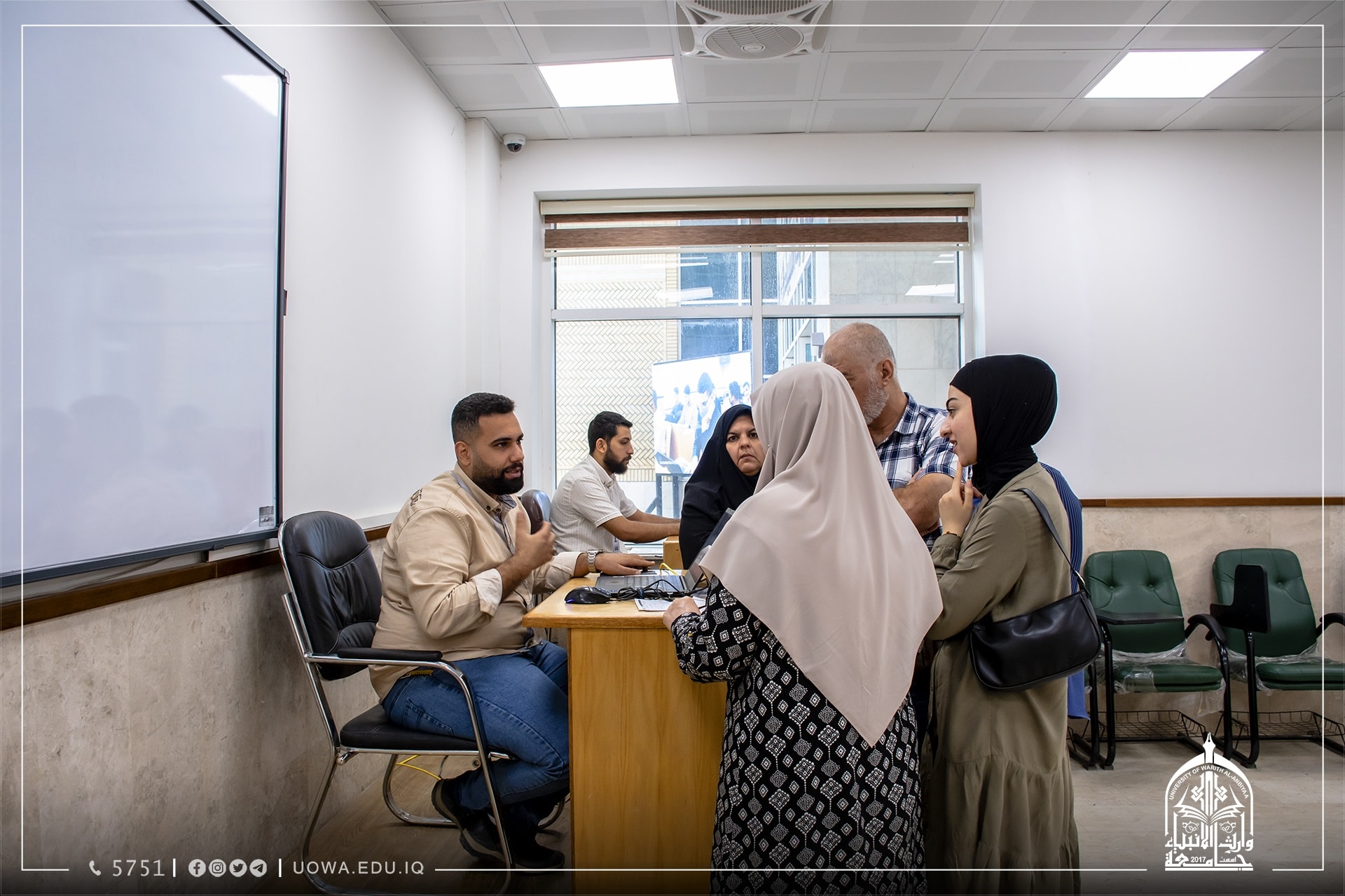 جانب من استقبال فريق التسجيل في جامعة وارث الانبياء(عليه السلام) للطلبة الاعزاء واولياء امورهم الكرام للاجابة عن استفساراتهم ومساعدتهم في انجاز خطوات التقديم.