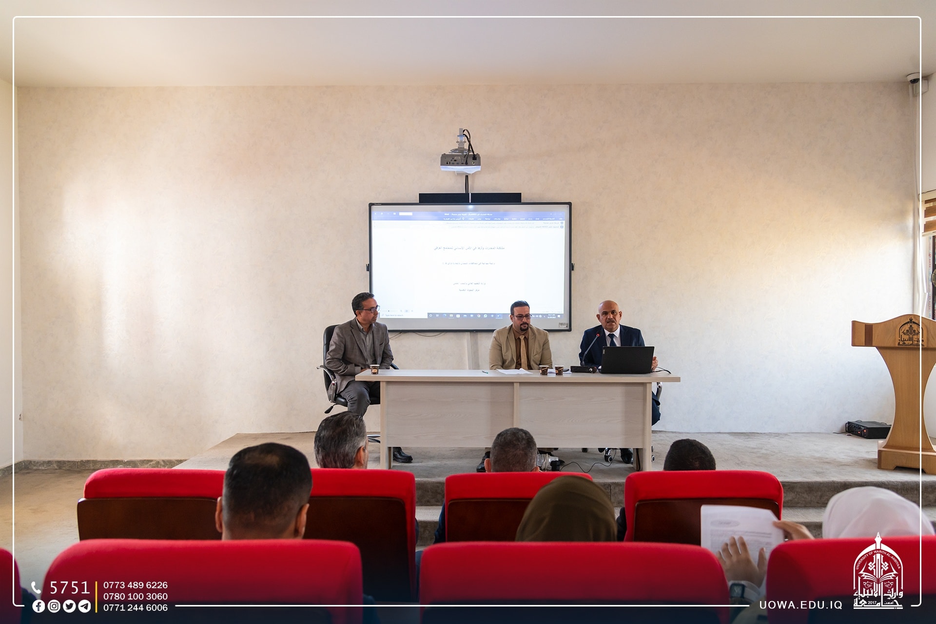 ندوة علمية عن المخدرات والرؤية الطبية والانسانية، تناولت فيها ظاهرة المخدرات وآثارها الصحية والاجتماعية، إذ سلطت الندوة الضوء على هذه الظاهرة السلبية واثارها على الفرد والعائلة والمجتمع، وتناولت أيضاً أضرار المخدرات وما ينتج عنها من تأثيرات آنية ومستقبلية على الفرد والمجتمع، كذلك التأكيد على المسؤولية الملقاة على الجميع في مجابهة تلك الآفة الخطيرة والحد من انتشارها، شارك بتقديم هذه الندوة الدكتور مهدي صالح مدير برنامج مكافحة المخدرات في وزارة الصحة، وا.د.علي عودة محمد مدير عام مركز البحوث النفسية في وزارة التعليم، والدكتور كريم رشك سالم من كلية التمريض جامعة كربلاء.