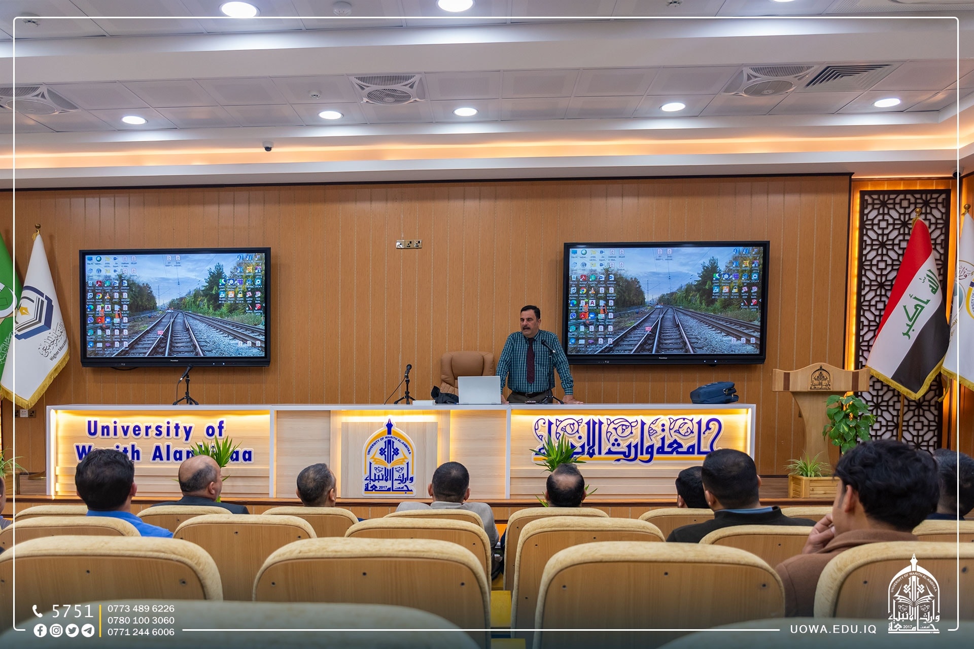 اقام قسم الهندسة المدنية بالتعاون مع قسم الشؤون العلمية في جامعة وارث الانبياء(عليه السلام) ندوة علمية بعنوان(Modern Construction Technology Using Hydraulic Jacks Systems Rapid Bridge Replacement on 5 Days Timelapse) ، قدمها المتخصص في تصميم الهياكل الحديدية وتصميم المنشئات الكونكريتية الأستاذ الدكتور هيثم حسن متعب الدعمي من جامعة بابل.
