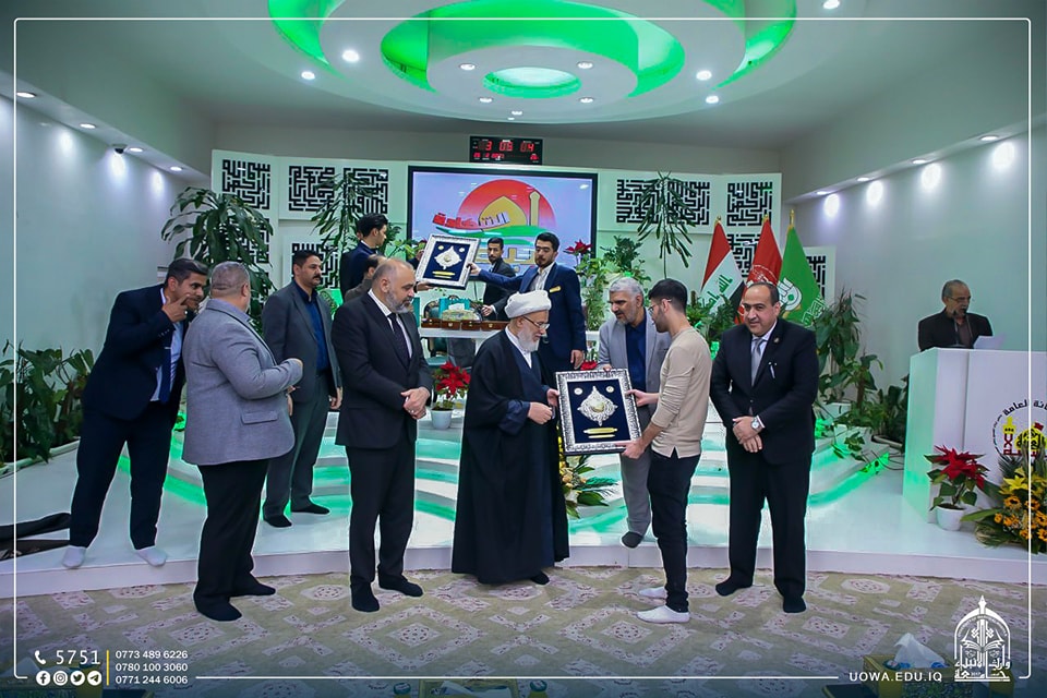 على هامش "مهرجان ربيع الشهادة" كّرم المتولي الشرعي للعتبة الحسينية المقدسة سماحة الشيخ عبد المهدي الكربلائي (دام عزه)، وبحضور السيد رئيس الجامعة الاستاذ الدكتور ابراهيم الحياوي والاستاذ الدكتور واقد الموسوي عميد كلية الهندسة ضمن فقرة تكريم العراقيين المبدعين مجموعة من خريجي جامعة وارث الانبياء (عليه السلام) عن بحوث تخرجهم بحضور عدد من التدريسيين والطلبة وأولياء الأمور فضلا عن ضيوف المهرجان من خارج العراق الذين أبدو انبهارهم واندهاشهم بنوع البحوث أثناء العرض والتي ترتقي إلى مستوى الدراسات العليا.