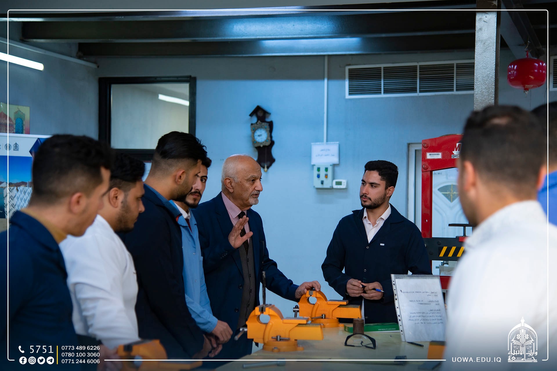 جولة تفقدية للسيد المساعد الاداري الاستاذ الدكتور نوفل الاعرجي مع طلبتنا الاعزاء في كلية الهندسة ،وداخل الورش الهندسية ، للوقوف على سير العملية التعليمية وتفقد إحتياجات الورش من اجهزة ومعدات تسهم في رفع المستوى العلمي للطلبة.