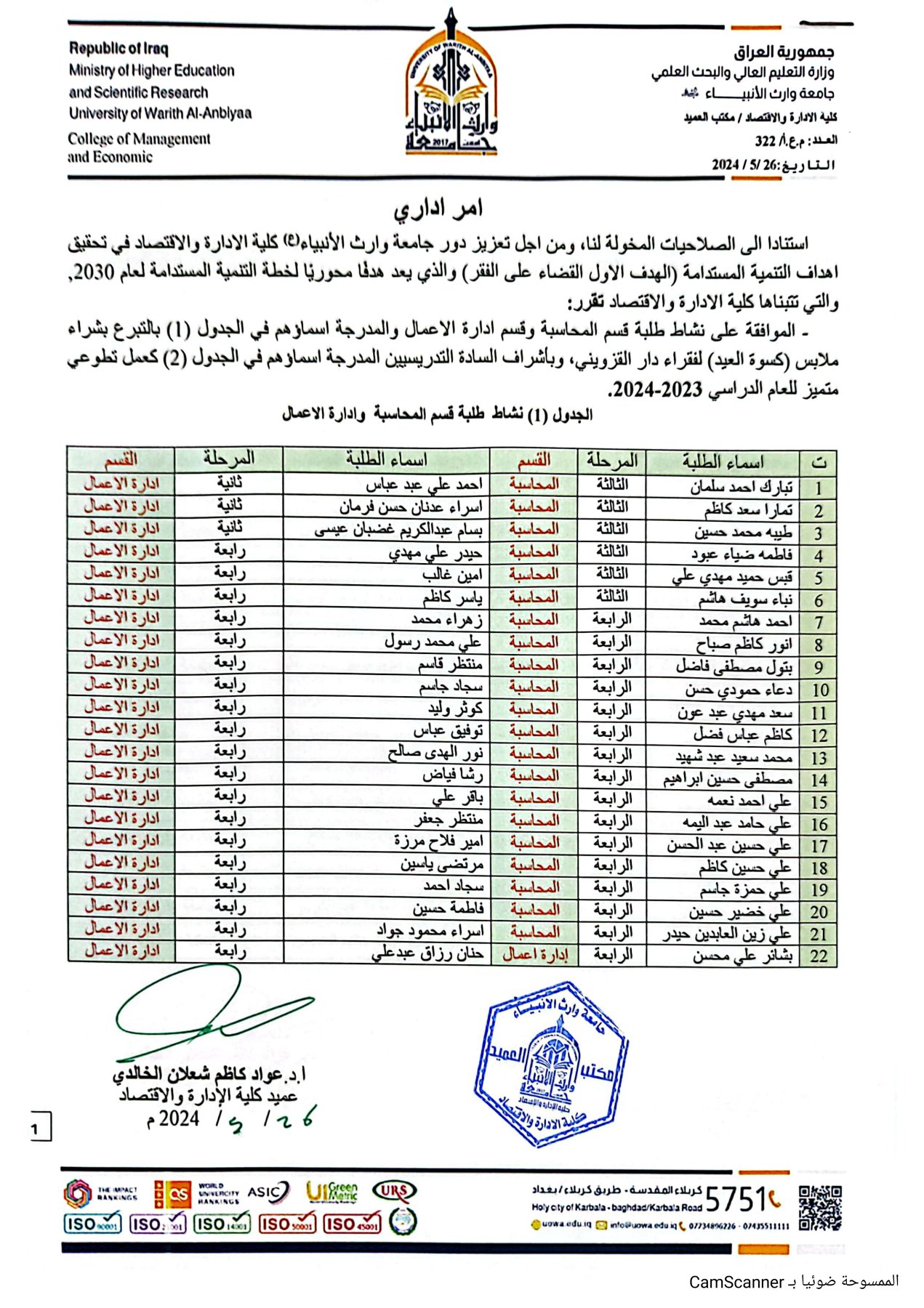 جامعة عراقية معترف بها من قبل وزارة التعليم العالي والبحث العلمي العراقي بموجب الامر الوزاري المرقم ( ت.أ / ك 4727 في سنة 2017)