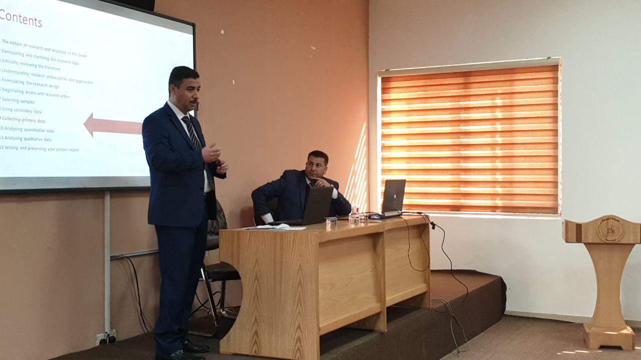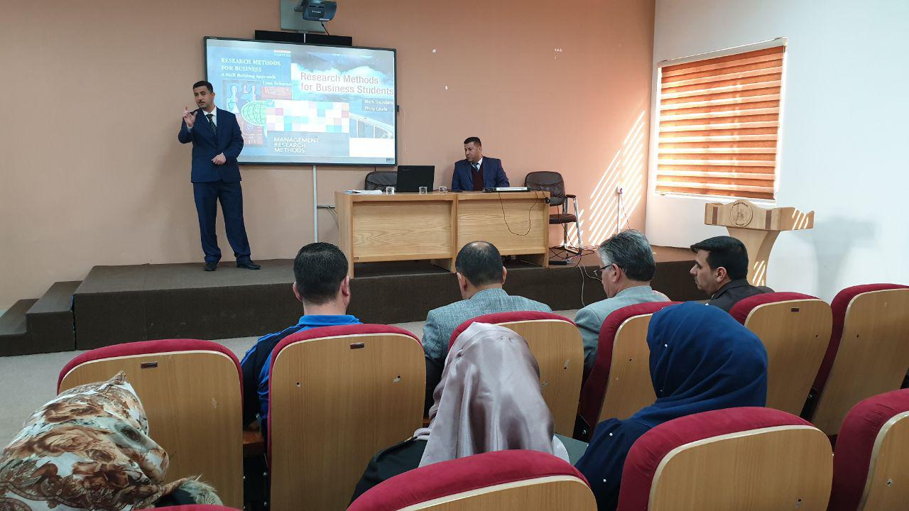 اقيمت في قاعة الامام الحسن -كلية الادارة والاقتصاد حلقة نقاشية بعنوان اعداد استمارة الاستبيان وكيفية استخدام نماذج Google في نشرها الكترونيا من قبل أ.د.عامر العطوي و م.م.علي عزيز وقد تضمنت الحلقة الاشارة الى العديد من المحاور المهمة التي تتعلق بمفهوم الاستبيان والية بناء الاستبيان والخطوات اللازم اتباعها من قبل باحثيين بالاضافة الى تقديم امثلة تطبيقية حول نماذج Google وقد شارك في الحلقة النقاشية المساعد العلمي لرئيس الجامعة أ.د.عباس الدعمي وتدريسي كلية الادارة والاقتصاد و عدد من تدريسي باقي الكليات وعدد من الطلبة