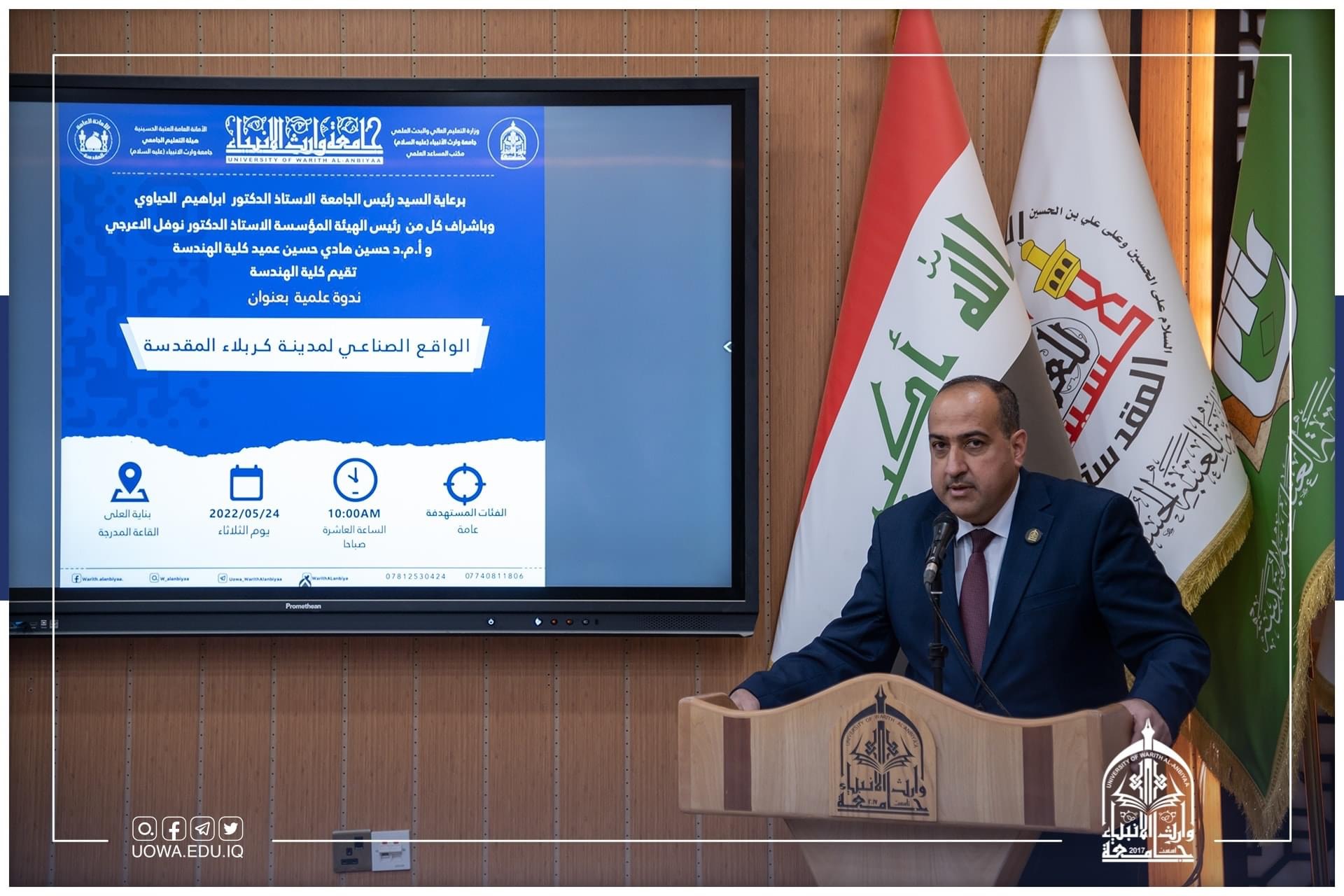 "الواقع الصناعي لمدينة كربلاء المقدسة" بندوة علمية في جامعة وارث الانبياء(عليه السلام)