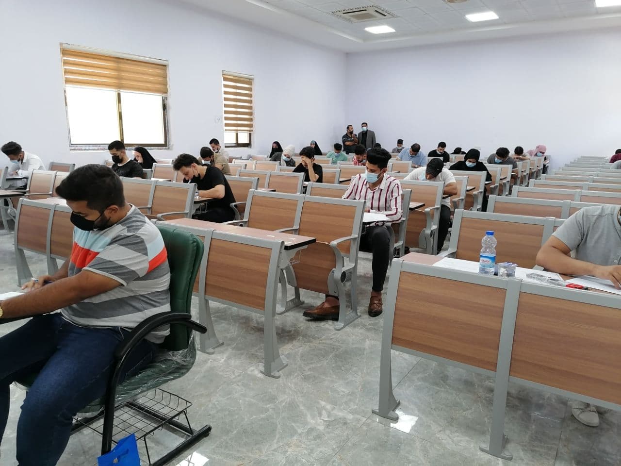 جانب من الامتحان الحضوري لطلبة المرحلة الرابعة - قسم الهندسة المدنية يوم الثلاثاء المصادف 28/7/2021 وسط اجراءات وقائية مشددة.