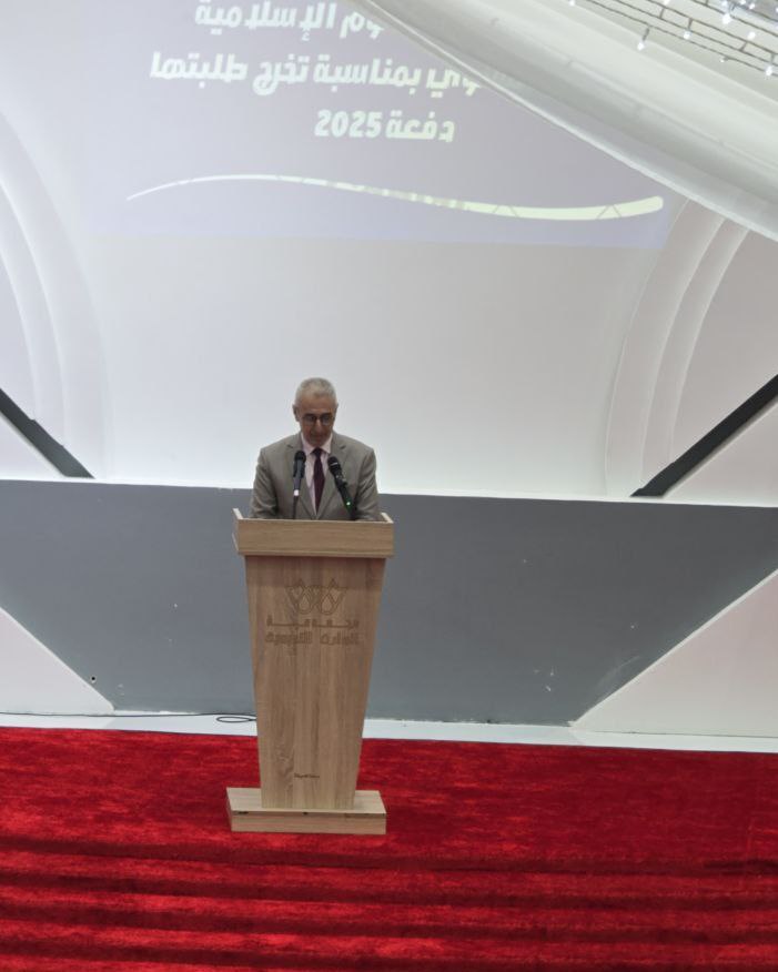 فطوبى لنا بكم، وأنتم فرحونَ، متوَّجونَ بشهادةِ البكالوريوسِ في علمِ اللهِ تعالى، ورسالةِ القرآنِ الكريمِ، ومنظومتِهِ المعرفيةِ، ورؤيتِهِ الكونيةِ...