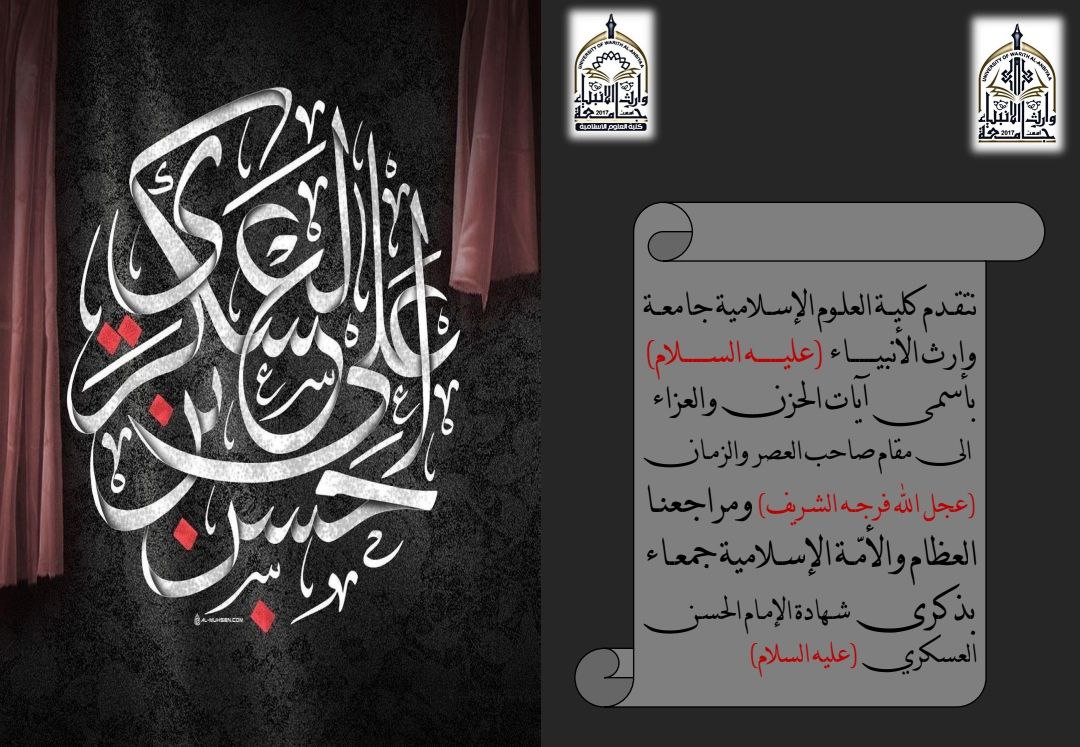 نتقدم كلية العلوم الإسلامية جامعة وارث الأنبياء (عليه السلام) بأسمى آيات الحزن والعزاء