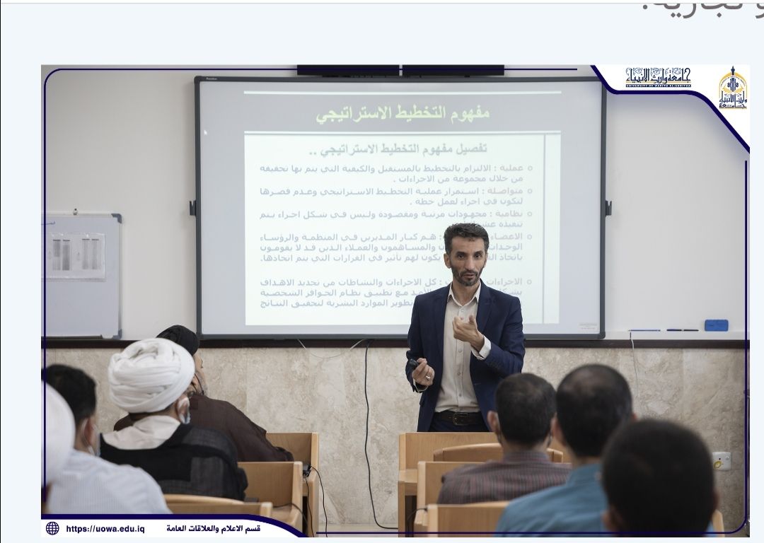 لليوم الثاني على التوالي تستمر دورة التخطيط الاستراتيجي التي تقيمها كلية العلوم الإسلامية بالتعاون مع أكاديمية وارث للتنمية البشرية سعياً منها للتميز الاكاديمي ولما يشكله التخطيط الاستراتيجي من اهمية في تحقيق اهداف الجامعة،