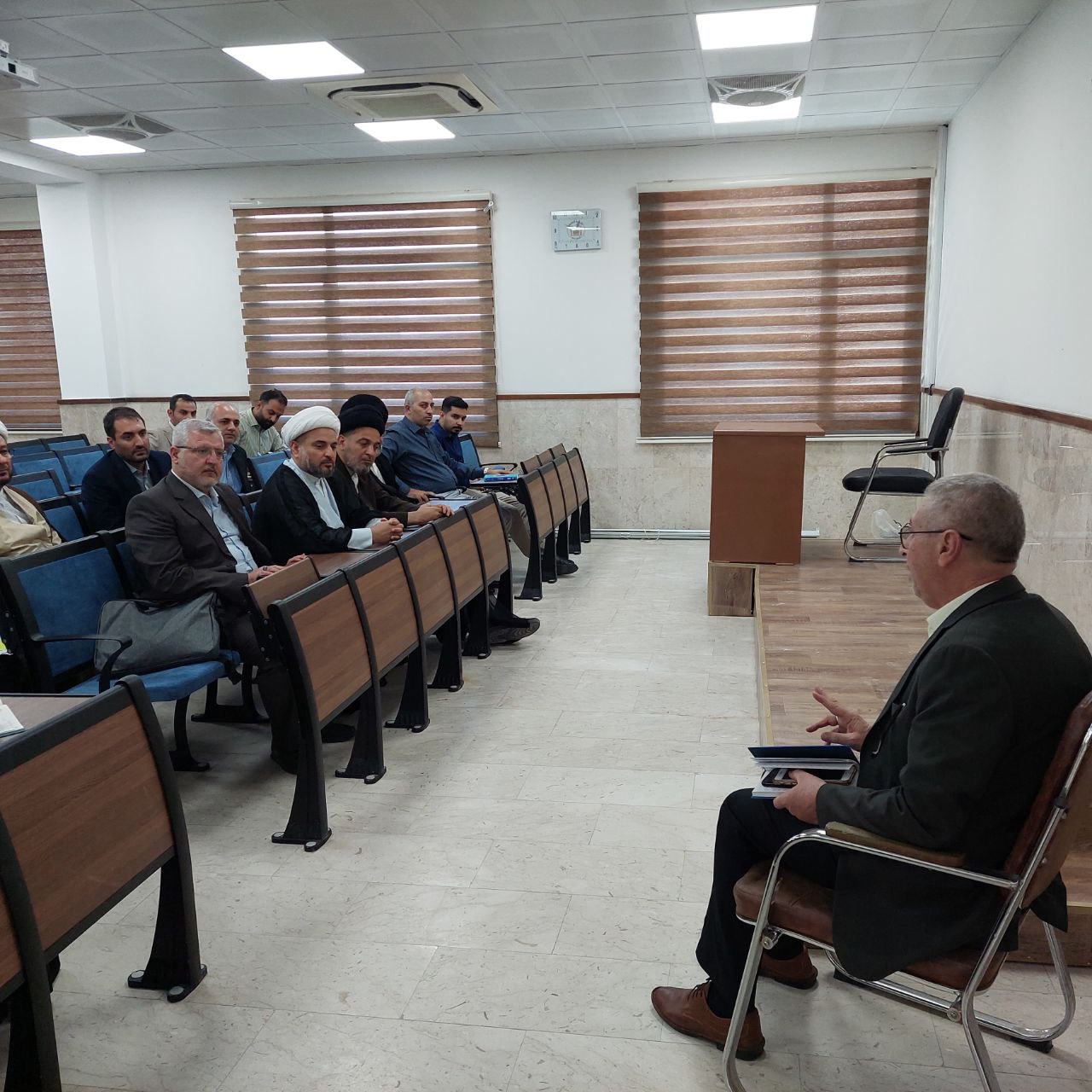 عقد عميد كلية العلوم الإسلامية بجامعة وارث الأنبياء، الدكتور طلال الكمالي، اجتماعًا مع الكادر التدريسي يوم السبت الموافق 14 سبتمبر 2024. في بداية الاجتماع، رحب الدكتور الكمالي بالأساتذة الجدد.