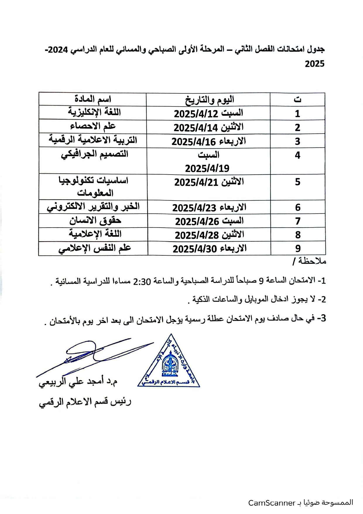 جامعة وارث الانبياء – كلية الاعلام – قسم الاعلام الرقمي – المرحلة الثانية (صباحي)