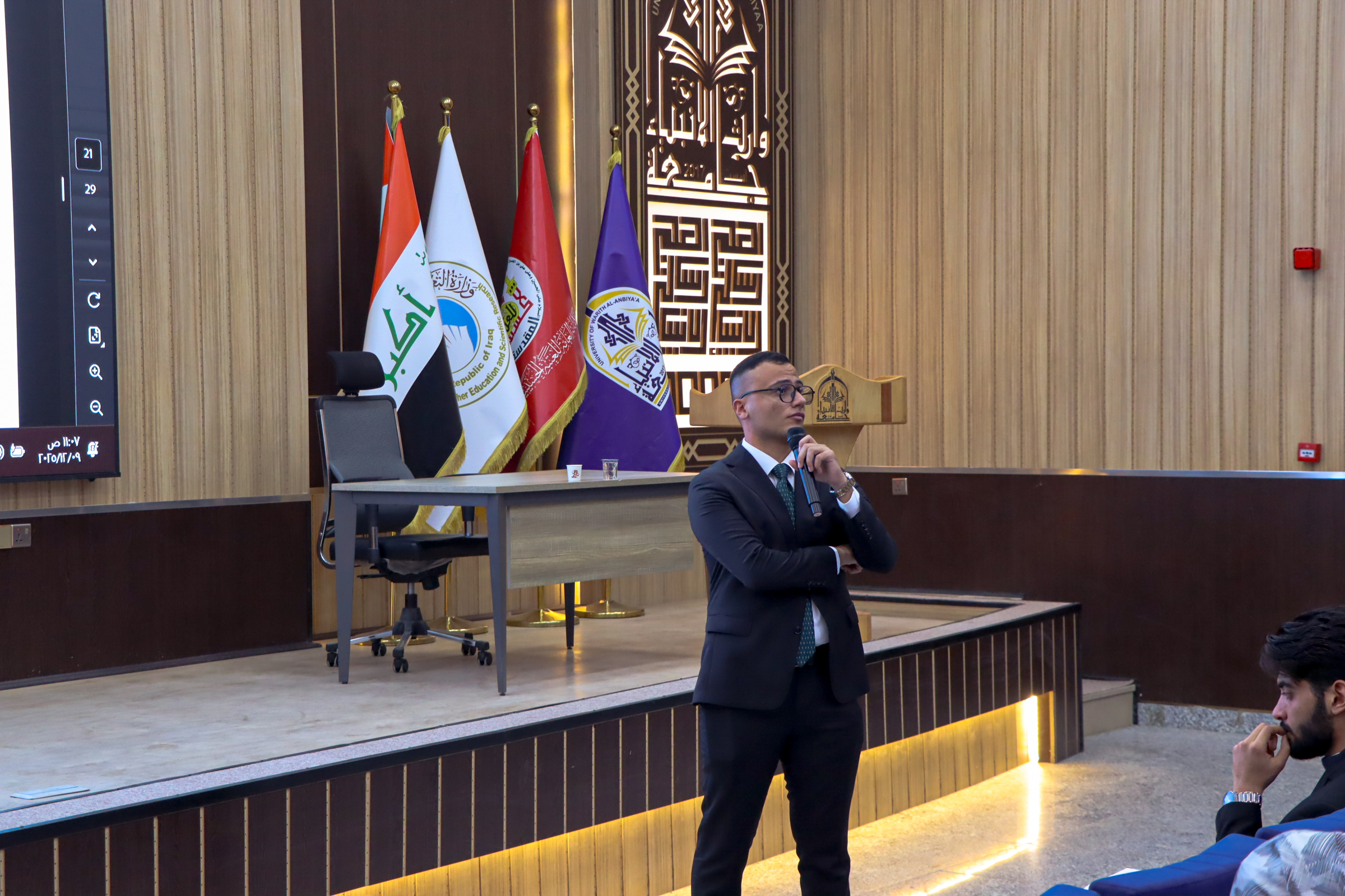 تحت شعار “معاً لمجتمع واعٍ بصحة السكري” احتضنت كلية الطب في جامعة وارث الأنبياء (عليه السلام) اليوم الجمعة الموافق 14 تشرين الثاني 2025، الندوة العلمية المتخصصة التي أقامتها الجمعية العراقية لأطباء الكيمياء المرضية بالتعاون مع مركز الحسن للغدد الصم والسكري وبرعاية شركة الريادة العربية، وبمشاركة أساتذة وباحثين مختصين من مختلف المراكز العلمية داخل العراق وخارجه.وجسّدت الندوة حرص الكلية على تعزيز الوعي الصحي المجتمعي ودعم الجهود العلمية والطبية في مواجهة مرض السكري باعتباره أحد أكثر الأمراض انتشاراً عالمياً. وقد افتُتحت الندوة بحضور الأستاذ الدكتور علي عبد سعدون الغزي عميد كلية الطب، الذي بيّن في كلمته أهمية الدور الذي تؤديه المؤسسات الأكاديمية في نشر التثقيف الصحي وتشجيع البحث العلمي المتخصص.وامتدت محاور الندوة عبر جلستين علميتين تناولتا موضوعات دقيقة ومتقدمة في مجال رعاية مرضى السكري، شملت مناقشة استراتيجيات ضبط جرعات الطعام وفق منهجية DAFNE، وأحدث الأساليب المتطورة لعلاج قصور الغدة الدرقية المقاوم للـTSH، إلى جانب طرح رؤى بحثية حول مستقبل خلايا بيتا في داء السكري من النوع الأول وما إذا كانت خاملة أم قابلة للاستعادة. كما تطرقت المحاضرات إلى الاستخدامات المختبرية لتقنية HPLC في التحليل الدقيق، إضافة إلى مناقشة فحوصات الهرمونات مثل الـMacroprolactin وإعادة تقييم دقة فحص HbA1c وتفسيره، وطرح دراسات متقدمة عن فحوصات الغدة الدرقية لدى الحوامل والأنماط المختلطة للسكري التي تجمع بين النوع الأول والثاني، فضلاً عن استعراض أحدث الأجهزة العالمية المستخدمة في تقييم تحاليل السكري، ومنها أجهزة Lifotronic المتقدمة في فحص HbA1c.واختُتمت أعمال الندوة بتوزيع شهادات المشاركة والتقاط الصور التذكارية للمشاركين، في أجواء عكست الاهتمام الذي توليه كلية الطب بالفعاليات العلمية التي ترفد المعرفة الطبية وتدعم رسالتها في خدمة المجتمع والارتقاء بالبحث الأكاديمي المتخصص.