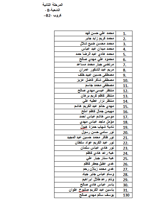 اعزائنا طلبة المرحلة الثانية هذه القوائم توضح اسماء الطلبة حسب الشعب والكروبات للعام الدراسي 2018-2019 متمنين لكم عاما دراسيا مثمراً بالعلم والموفقية.