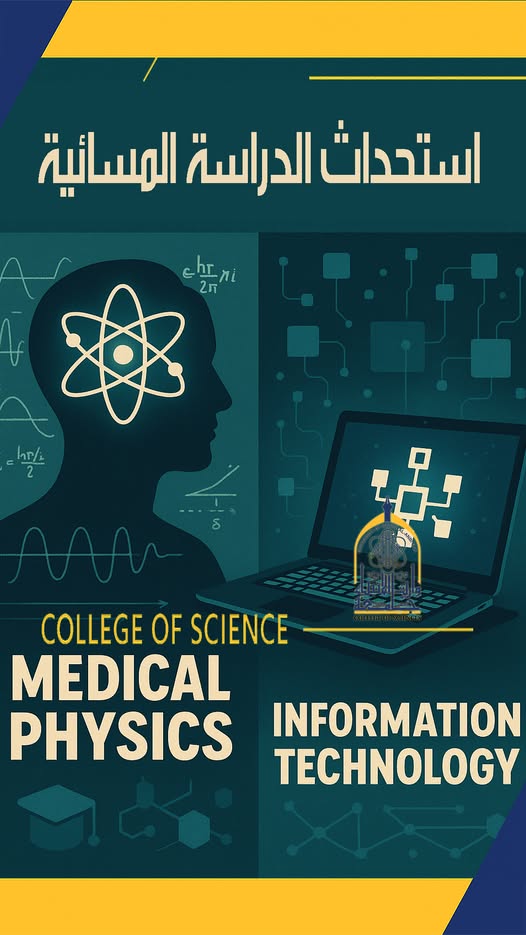 تعلن كلية العلوم عن استحداث الدراسة المسائية في قسم الفيزياء الطبية وقسم تكنولوجيا المعلومات