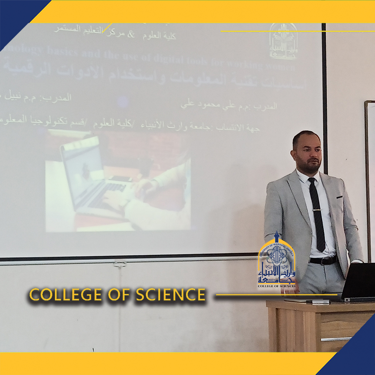 نظّمت وحدة شؤون المرأة في كلية العلوم، وضمن مبادراتها التربوية والتوعوية، بتاريخ (22/11/2025)، دورة تثقيفية توعوية بعنوان: «أساسيات تقنية المعلومات واستخدام الأدوات الرقمية للمرأة العاملة»، قدّمها كلٌّ من م.م نبيل صادق وم.م علي محمود.