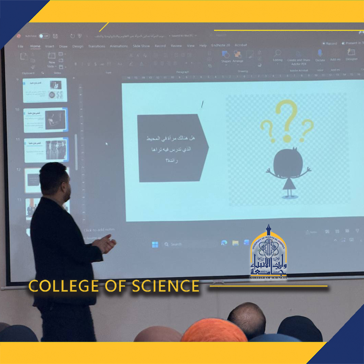أقامت كلية العلوم في جامعة وارث الأنبياء عليه السلام ورشة توعوية بعنوان يوم المرأة: تمكين المرأة في العلوم والتكنولوجيا، قدّمها التدريسي م.م كرار صادق محسن بحضور مجموعة من الطلبة وأعضاء هيئة التدريس.