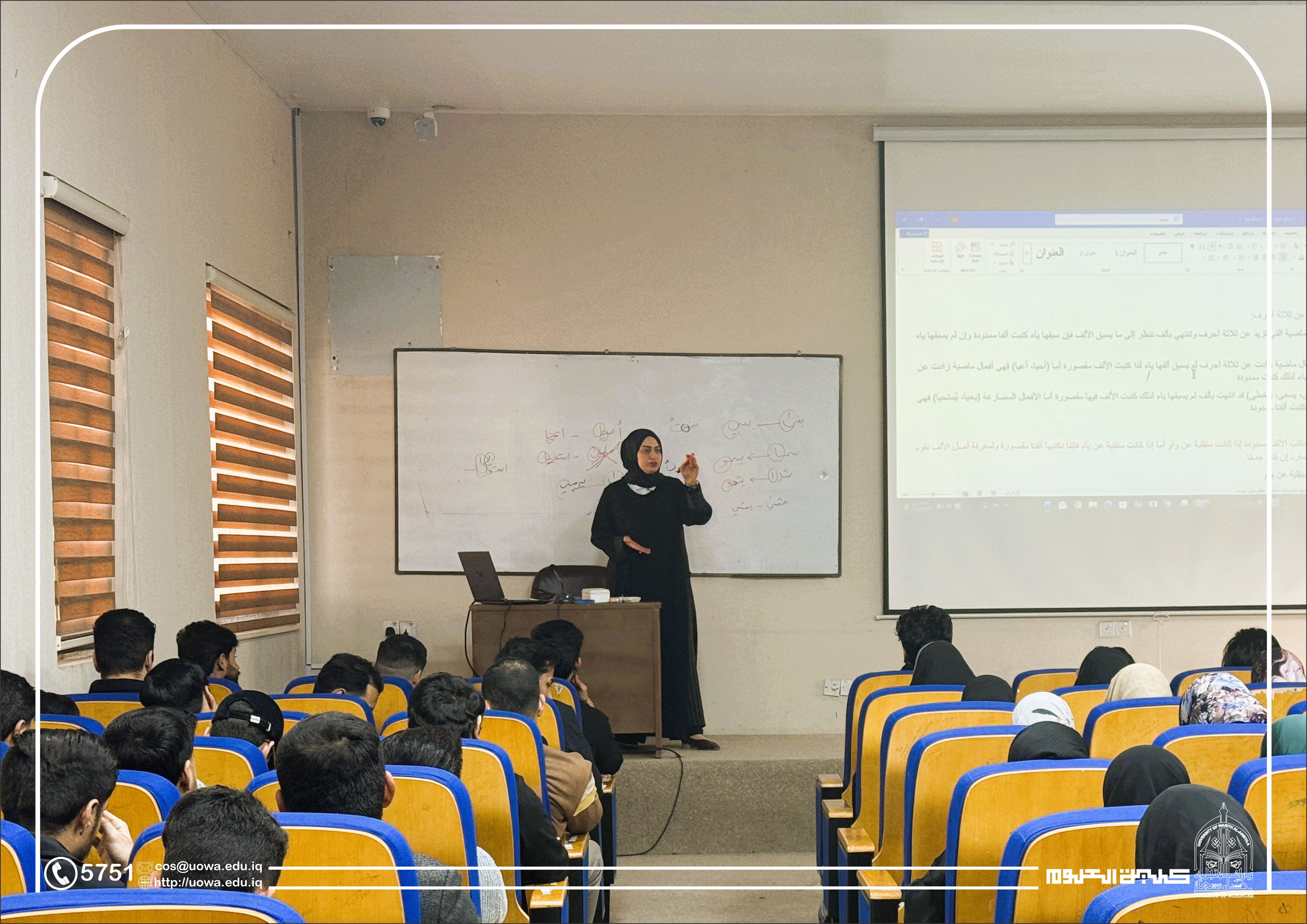 أُقيمت محاضرة علمية بعنوان الأخطاء الشائعة في اللغة العربية قدّمتها م.م. دعاء شاكر كاظم، تناولت فيها بالدراسة والتحليل أبرز الظواهر اللغوية الخاطئة المتداولة في الاستعمالين الشفهي والتحريري، ولا سيما في البيئة الجامعية. واستهلّت المحاضرة ببيان أهمية سلامة اللغة العربية بوصفها أداةً للتفكير والتعبير ووعاءً للمعرفة، مؤكدةً أن دقة الاستعمال اللغوي تمثل ركيزةً أساسية في بناء النص الأكاديمي الرصين.