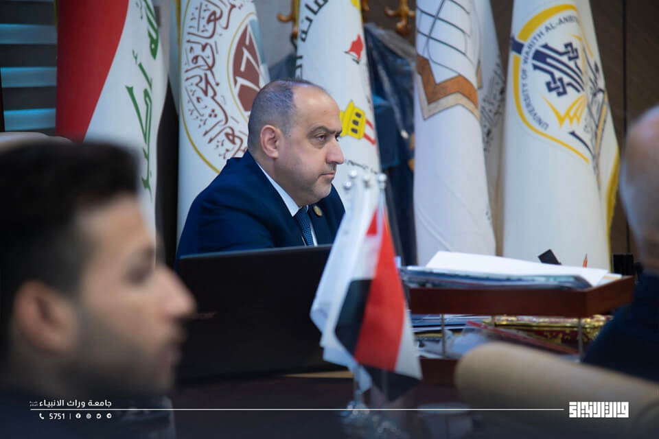 عقد رئيس جامعة وارث الأنبياء (عليه السلام)، الأستاذ الدكتور إبراهيم سعيد الحياوي، اجتماعاً مع عدد من رؤساء الأقسام الإدارية في الجامعة، بحضور المساعدين العلمي والإداري، لمناقشة البرامج والخطط الإدارية التي من شأنها تعزيز سير العمل داخل الجامعة.