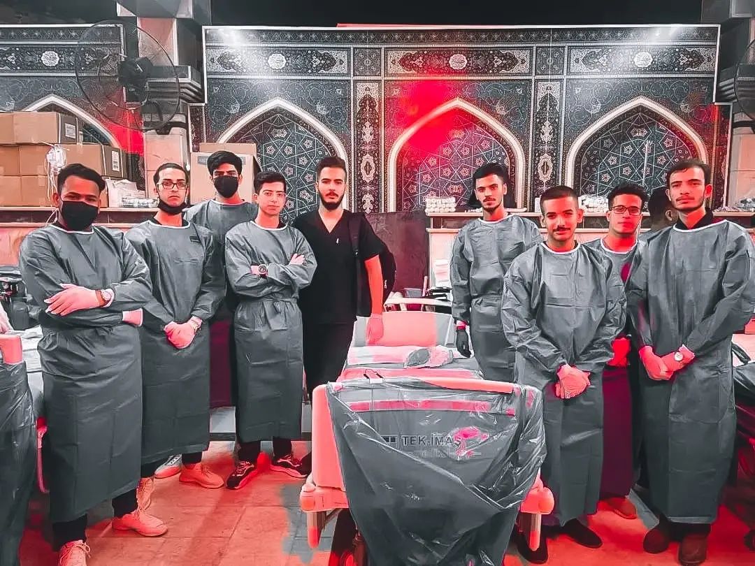 مشاركة طلبة كلية الطب والتمريض يقدمون خدماتهم لزائري الامام الحسين (عليه السلام)