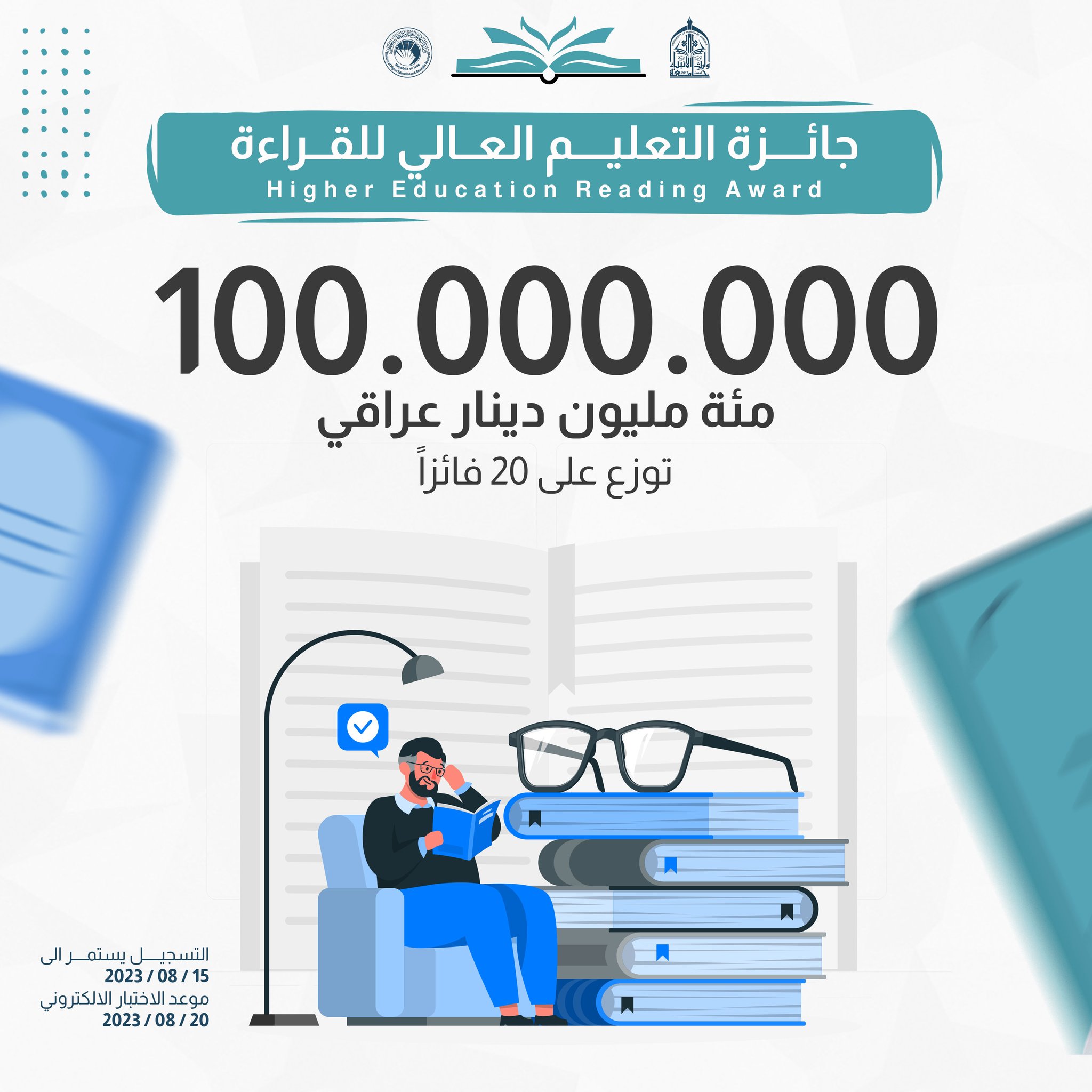 طلقت وزارة التعليم العالي والبحث العلمي مسابقة "جائزة التعليم العالي للقراءة" الخاصة بطلبة الدراسات الأولية في الجامعات العراقية كافة والتي قيمتها "مئة مليون دينار" تتوزع على عشرين فائزا. وتستند الجائزة الى التنافس على قراءة كتاب (شروط النهضة) للمفكر العربي مالك بن نبي.