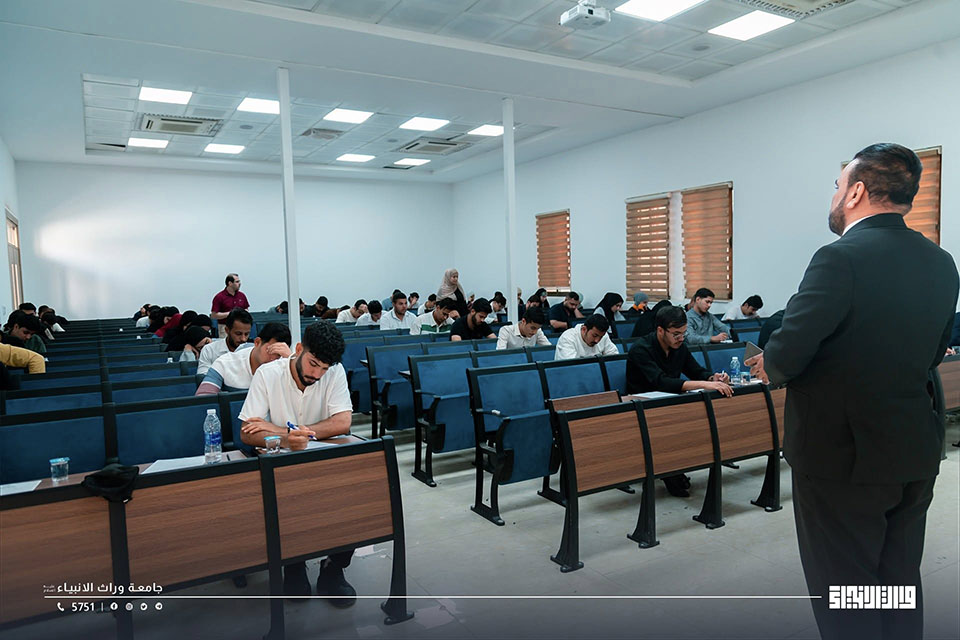 The University of Warith Al-Anbiyaa (PBUH) continues to administer final examinations under the direct supervision of the university presidency and with the close follow-up of the Vice President for Academic Affairs, Professor Dr. Waqid Al-Moussawi. This process is carried out through coordinated and dedicated efforts by the college deanships and examination committees.