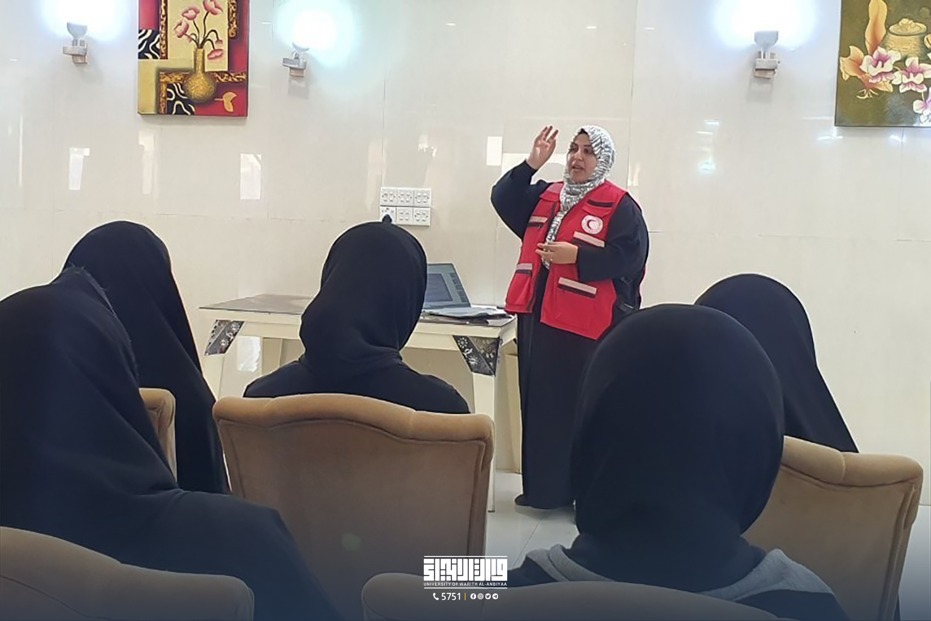 As part of the awareness and educational programs for female students at the University of Warith Al-Anbiyaa (peace be upon him), the Department of Internal Departments, in collaboration with the Iraqi Red Crescent Society, organized an educational lecture titled "Drugs and Their Effects on the Individual and Society" presented by Ms. Dhuha Yahya Aboud. The aim of this lecture was to shed light on this negative phenomenon and its effects, as well as the immediate and future impacts on individuals and society.