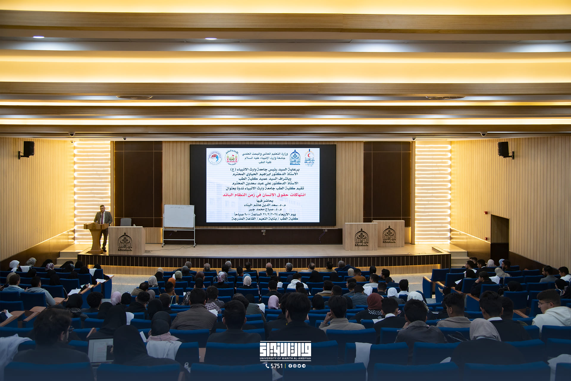 In line with its commitment to promoting human rights awareness and continuous education, the College of Medicine at Warith Al-Anbiyaa University (peace be upon him) organized a significant scientific symposium on "Human Rights Violations in the Era of the Previous Regime." The symposium witnessed active participation from students and faculty members.