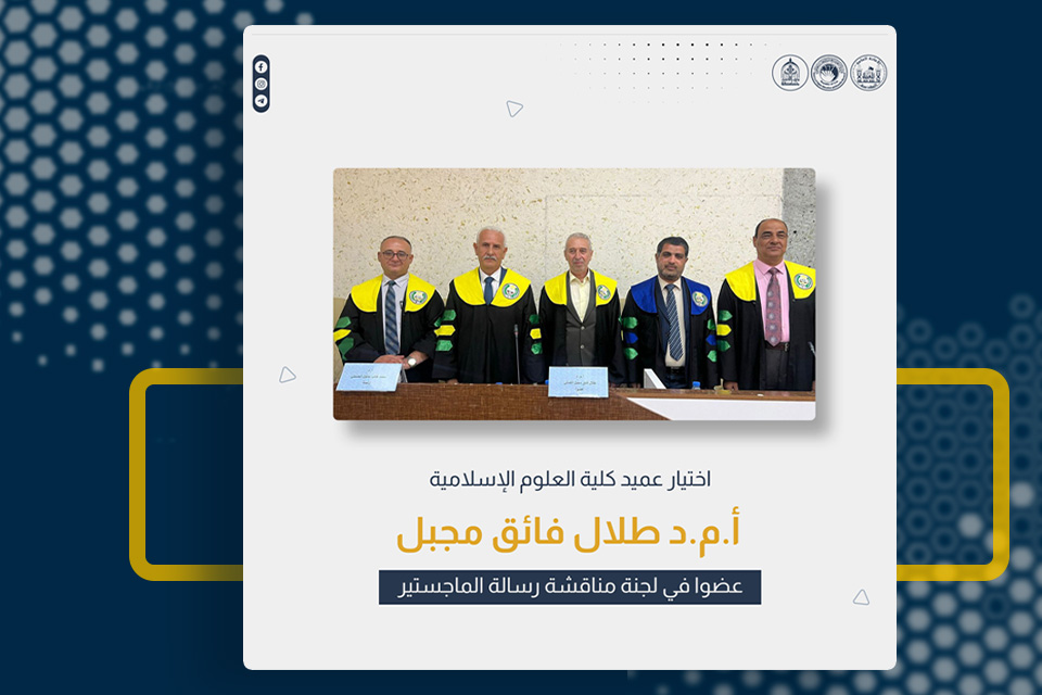 Assistant Professor Dr. Talal Al-Kamali, the dean of the College of Islamic Sciences at the University of Warith Al-Anbiyaa (PBUH), was selected to serve on the committee to discuss a master's thesis for a graduate student in the College of Islamic Sciences at the University of Babylon.