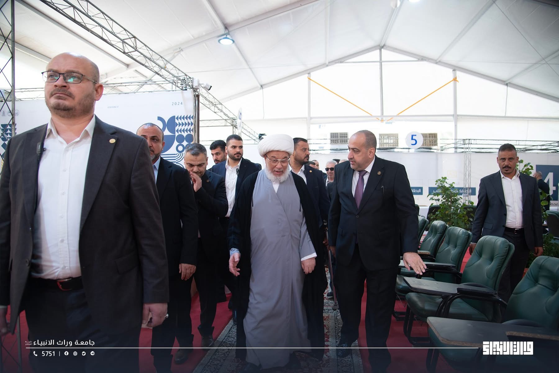 The representative of the Supreme Religious Authority, His Eminence Sheikh Abdul Mahdi Al-Karbalai ,visits the registration tent at Warith Al-Anbiyaa University