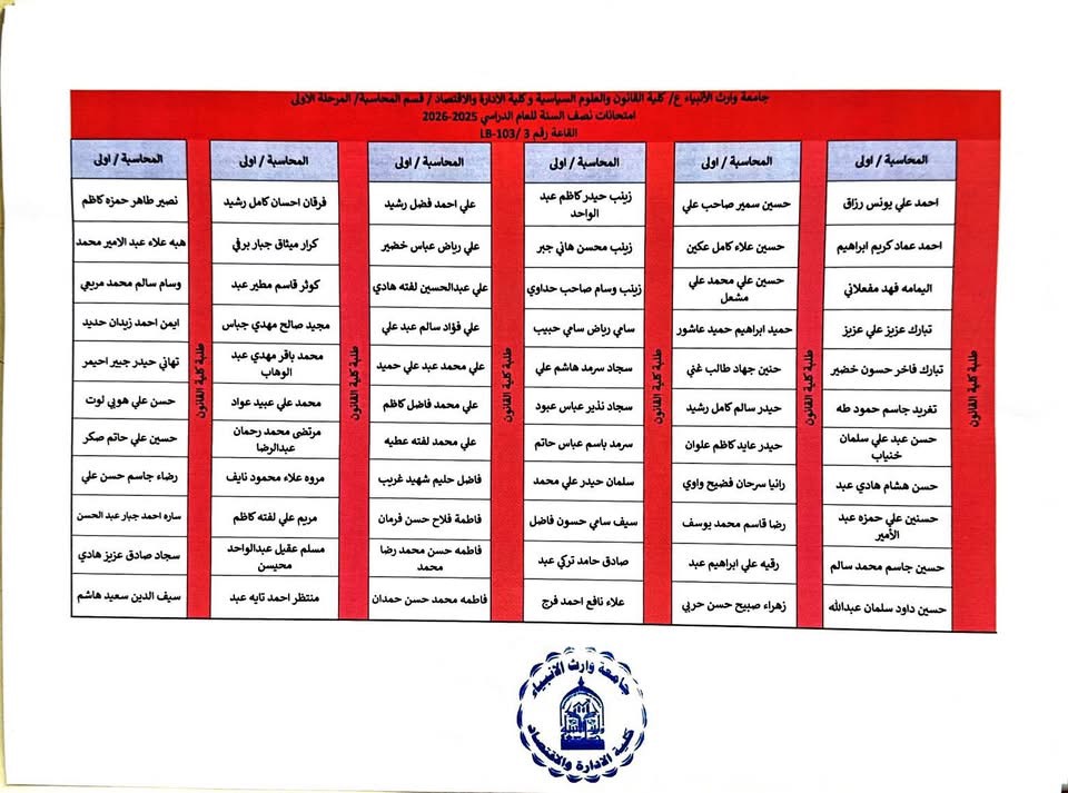 Warith Al-Anbiya University - where we graduate professional accountants with theoretical knowledge and a practical approach, capable of analyzing financial data and contributing to supporting businesses and institutions according to modern standards.