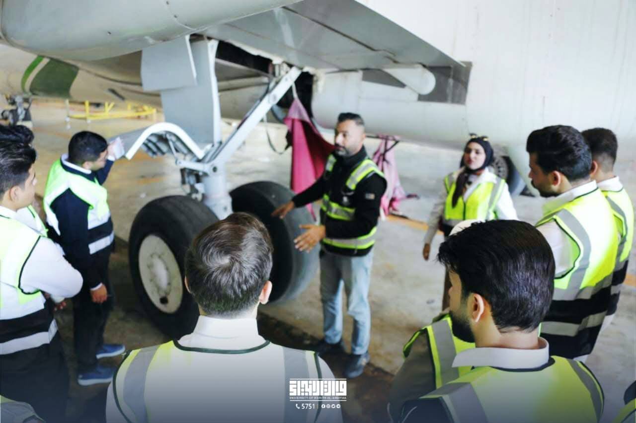 Second-year students in the Department of Aircraft Engineering at Warith al-Anbiya University (peace be upon him) conducted a scientific visit to Baghdad International Airport, with the aim of enhancing their practical knowledge and linking it to the theoretical aspects they are studying.