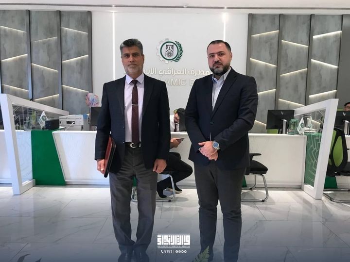Within the framework of the excellence strategy, and within a series of field visits to a number of Islamic banks, Dr. Jaafar Abdul Amir Al-Hussaini, Head of the Department of Islamic Finance and Banking at the College of Islamic Sciences at Warith Al-Anbiya University, visited the Iraqi Islamic Bank for Development and Investment. During the visit, he met with the bank’s director, Mr. Ahmed Qais Radif, where they discussed prospects for joint cooperation to raise the skill level of the department’s students, and ways to enhance their practical capabilities.