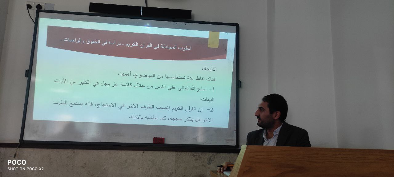 The College of Islamic Sciences at Warith Al-Anbiya University organized a scientific symposium titled "The Method of Argumentation in the Holy Qur’an: A Study of Rights and Duties," presented by Professor Murtadha Muhammad.