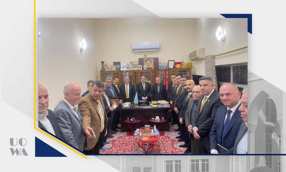 On a wonderful evening, a delegation from the University of Warith Al-Anbia visited the headquarters of the Karbala Council of Notables, consisting of Dr. Ibrahim Al-Hayawi, President of the University, Dr. Nofal Al-Araji, Administrative Assistant, Dr. Waqid Al-Moussawi, Scientific Assistant, Dr. Ali Sahib Al-Sharifi, Dean of the College of Law, Dr. Ali Abdul-Saadoun Al-Ghazi, Dean of the College of Medicine, Dr. Laith Muhammad Abbas, Assistant Dean, Dr. Ali Mansour Jassim, Assistant Dean, Dr. Riyadh Abdul-Rasoul Haniwa, Head of the Department of Diseases, Dr. Hussein Hadi Al-Awadi, Dean of the College of Engineering, Dr. Murtadha Ghanem Adai, Dean of the College of Nursing, and other professors. The delegation was received with great warmth, as the meeting included talk about the qualitative leaps achieved in the recent medical and legal educational progress of the university according to the standards approved by the Ministry of Higher Education and Scientific Research. The creative and distinguished were also honored with a document of thanks and appreciation, and they were given the Shield of Creativity and Excellence for their wonderful scientific educational performance, wishing continued success and progress for all colleges of the university. May God grant success... Saturday 8/2/2025