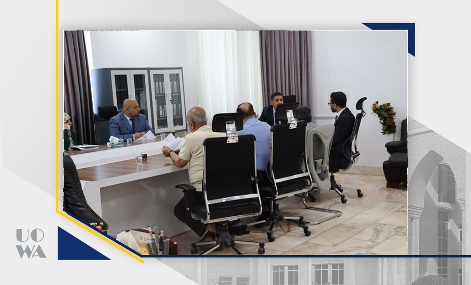 The Deanship of the College of Medicine at Warith Al-Anbiya University (peace be upon him) held an expanded meeting with the Head of the Quality Assurance Department at the University Presidency. The meeting was attended by the Dean of the College, Professor Dr. Ali Abdul Saadoun Al-Ghazi, the Scientific Assistant, and the heads of the Quality Assurance, Accreditation, and Digital Divisions.