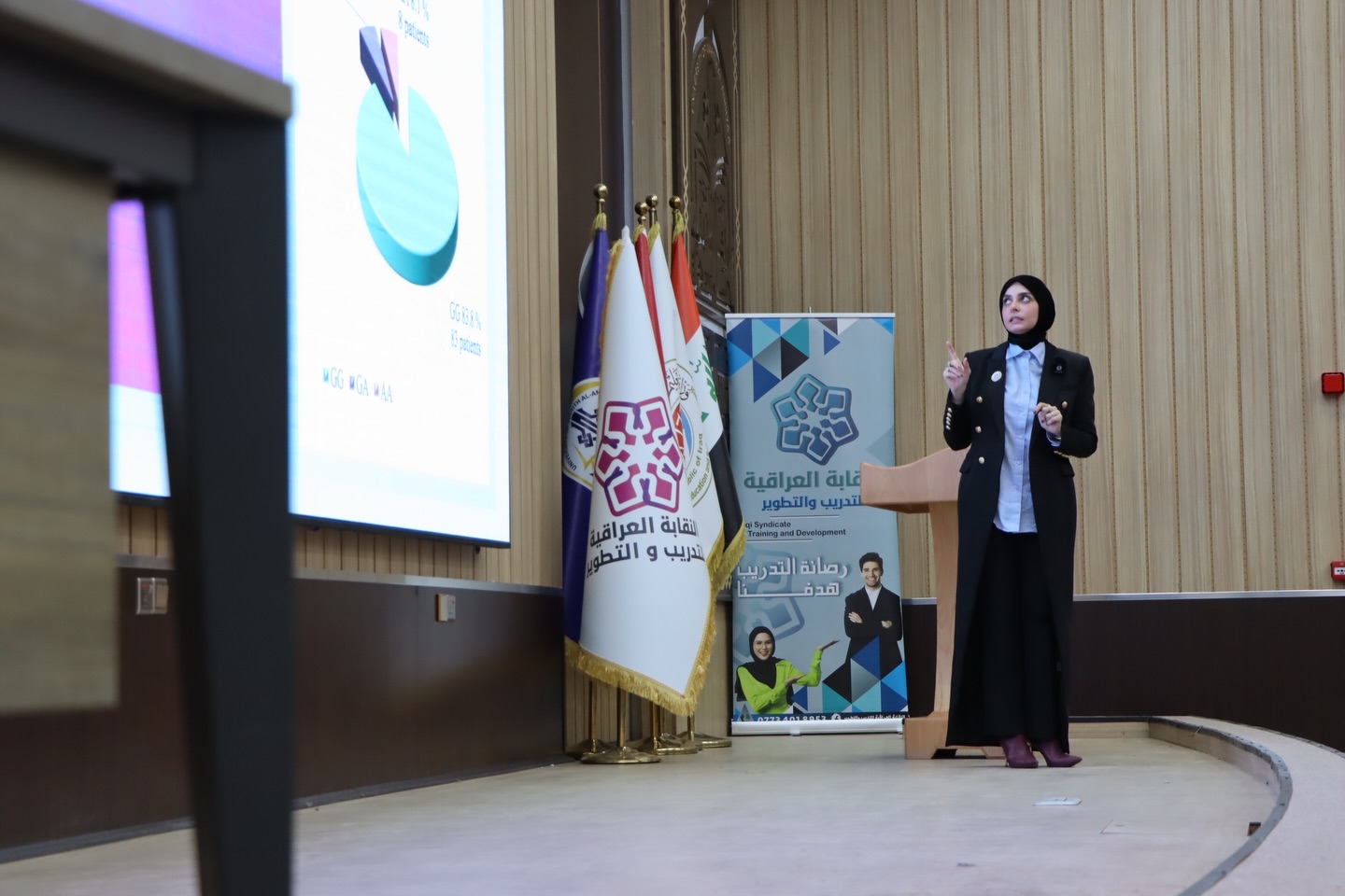 The College of Medicine at Warith Al-Anbiya University, in cooperation with the Iraqi Syndicate for Training and Development, held a scientific workshop entitled "Genetic Mutations in Type 1 Diabetes among Iraqi Patients." The workshop was attended by the Dean of the College of Medicine, Professor Dr. Ali Saadoun Al-Ghazi, along with a number of faculty members, staff, and students. Dr. Farah Ali Mahdi Al-Dabbagh presented the workshop, discussing the latest scientific findings related to genetic mutations affecting type 1 diabetes in Iraqi patients. She also reviewed research and applied aspects that contribute to understanding the mechanisms of the disease and improving diagnostic and treatment methods. This workshop is part of the college's efforts to support scientific research and enhance medical awareness about chronic and genetic diseases, in line with the Ministry of Higher Education and Scientific Research's directives to develop the medical field and serve the community.