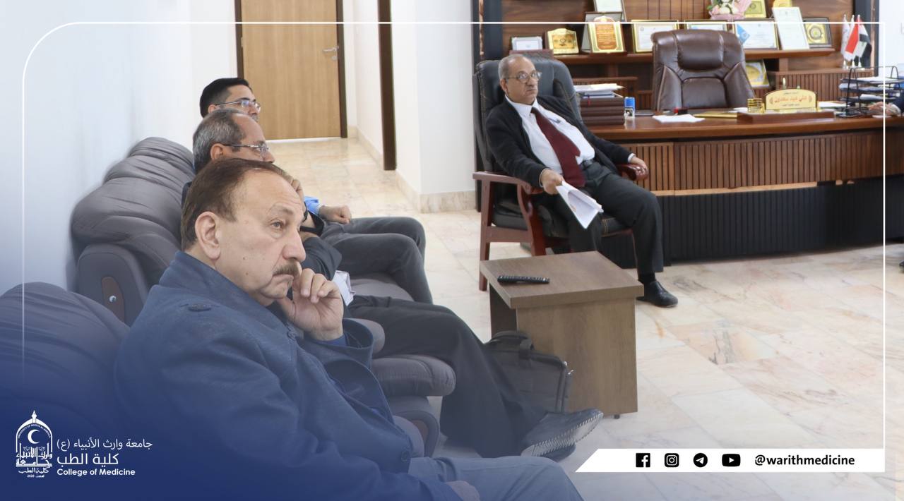 As part of its efforts to obtain accreditation, the College of Medicine, and in the presence of the Dean, Professor Dr. Ali Abd Saadoun Al-Ghazi, holds a number of meetings with the Leading Committee for Accreditation to review the latest work with the subcommittees for accreditation.