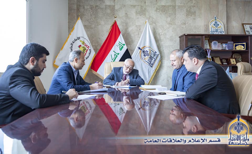 During the inspection visit of the Secretariat-General of Imam Hussein Holy Shrine Sheikh Abdul-Mahdi Al-Karbalai to the projects of the Directorate of Imam Hussein Holy Shrine, he visited the University of Warith Alanbiyaa and University of AlZahraa. During the visit, his Eminence viewed the buildings and laboratories of the two universities and met with the presidents of the two universities, assistants and some staff. Emphasizing on the necessity of building the scientific and educational excellence of the students and guided students to pay attention to their national responsibilities by insisting on the right demands of our people and their study responsibilities as reform begins by paying attention to science and study and that young people are leaders of the future and builders of the country.