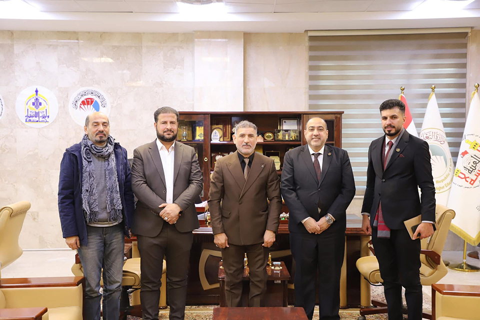 The President of the University of Warith Al-Anbiyaa (PBUH), Prof. Dr. Ibrahim Al-Hayawi, welcomed a delegation from the Iraqi Journalists Syndicate—Karbala Branch, led by Mr. Hussein Al-Shammari.