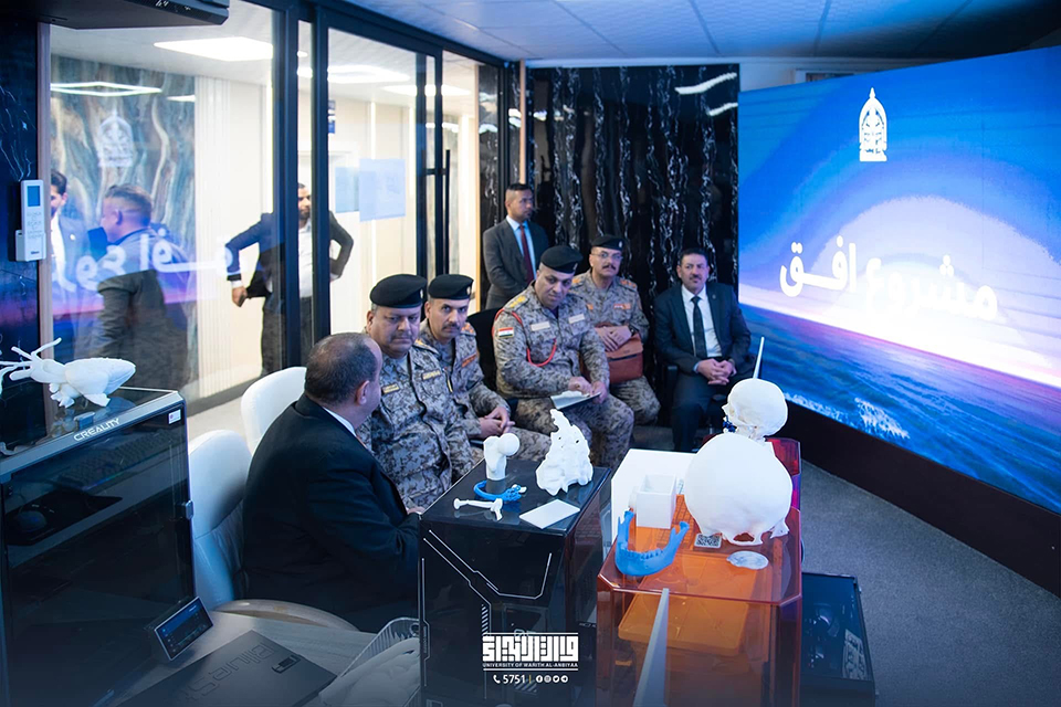 The President of the University of Warith Al-Anbiyaa (PBUH), Prof. Dr. Ibrahim Al-Hayawi, received Major General Dr. Qaisar Abdul-Razzaq, Director of Medical Rehabilitation and Wounded Care at the Ministry of Defence, to discuss prospects for scientific cooperation between the university and the Ministry.