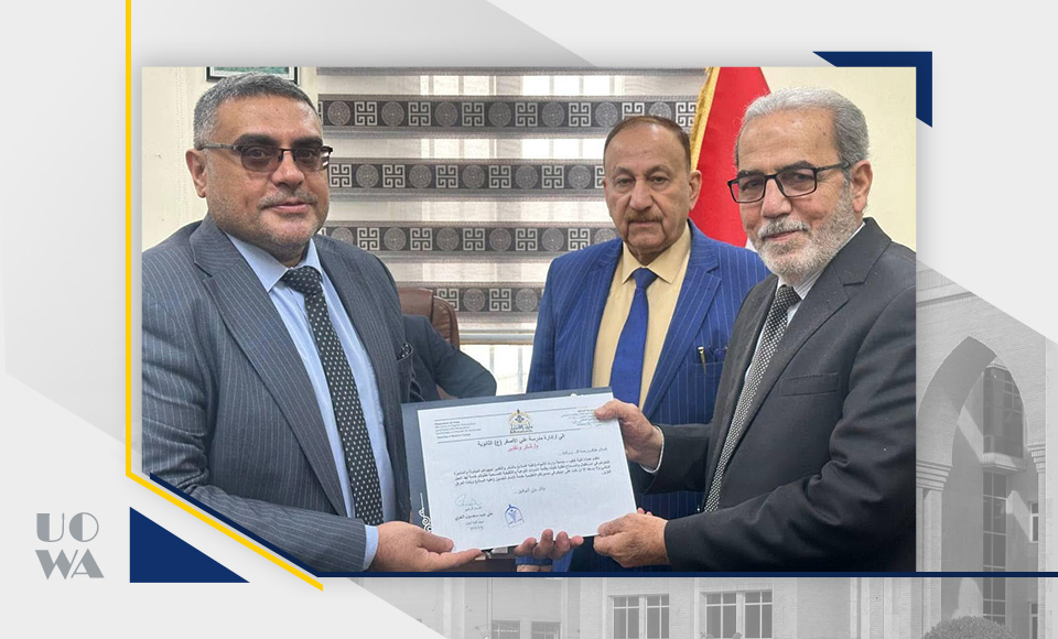 As part of its ongoing efforts to enhance academic and scientific collaboration between educational institutions, the Dean of the College of Administration and Economics at the University of Warith Al-Anbiyaa (PBUH), Professor Awad Al-Khalidi, welcomed the Dean of the College of Administration and Economics at Wasit University, Professor Ahmed Al-Waeli, during an official visit aimed at exploring opportunities for joint cooperation.