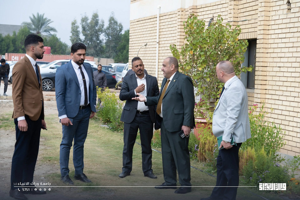 As part of the University of Warith Al-Anbiyaa’s commitment to close monitoring of the educational process, the University President, Professor Dr Ibrahim Saeed Al-Hayyawi, accompanied by the Vice President for Academic Affairs, Professor Dr Waqed Al-Moussawi, conducted a field tour of several colleges and university facilities. During the visit, he met with groups of students and reviewed their academic environment and educational needs.